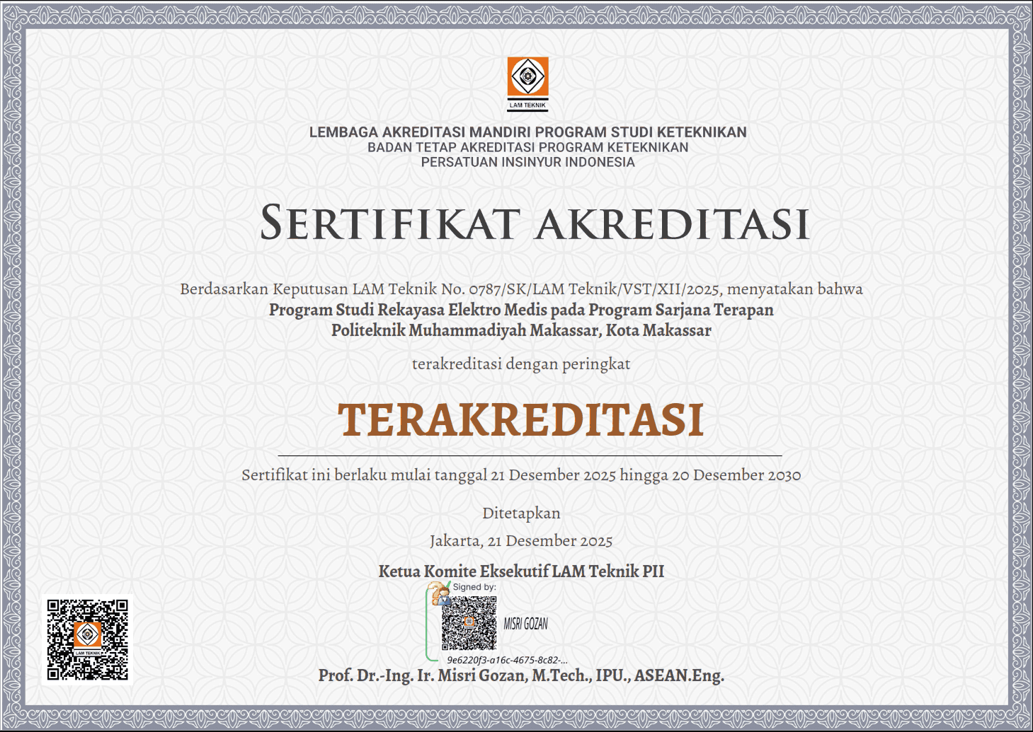 Sertifikat Akreditasi Program Studi D4 Rekayasa Elektro-Medis